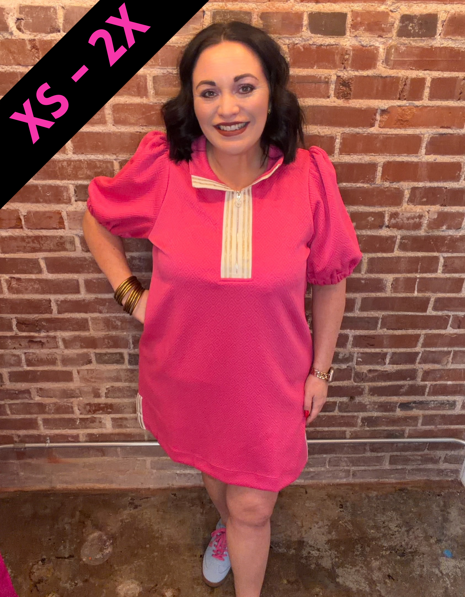 The Andie Dress features a half zip closure for adjustable fit and ease of wear, complemented by elegant gold accents that enhance its aesthetic appeal. This design choice not only promotes functionality but also provides a refined look suitable for various occasions, ensuring versatility in your wardrobe.