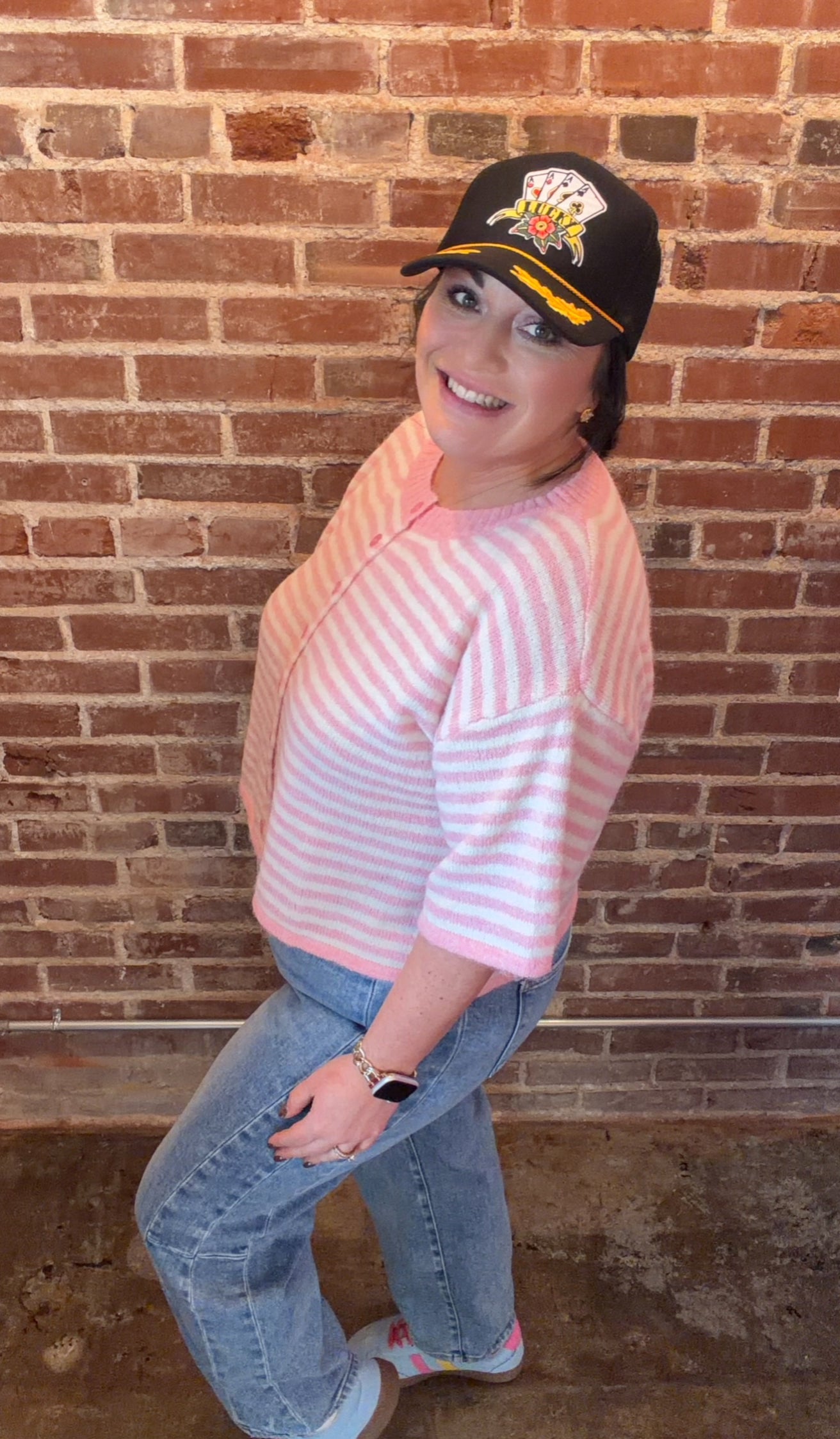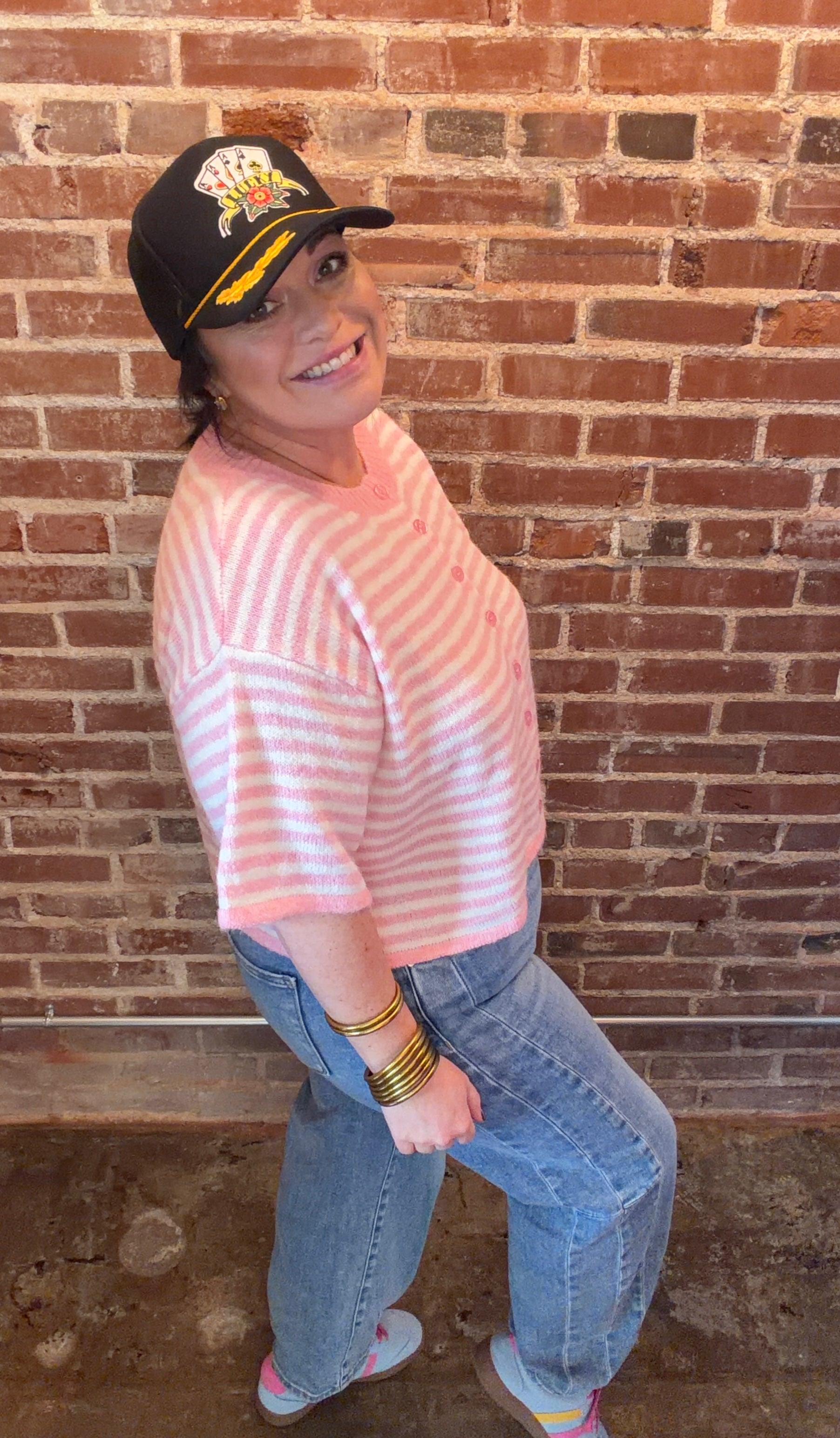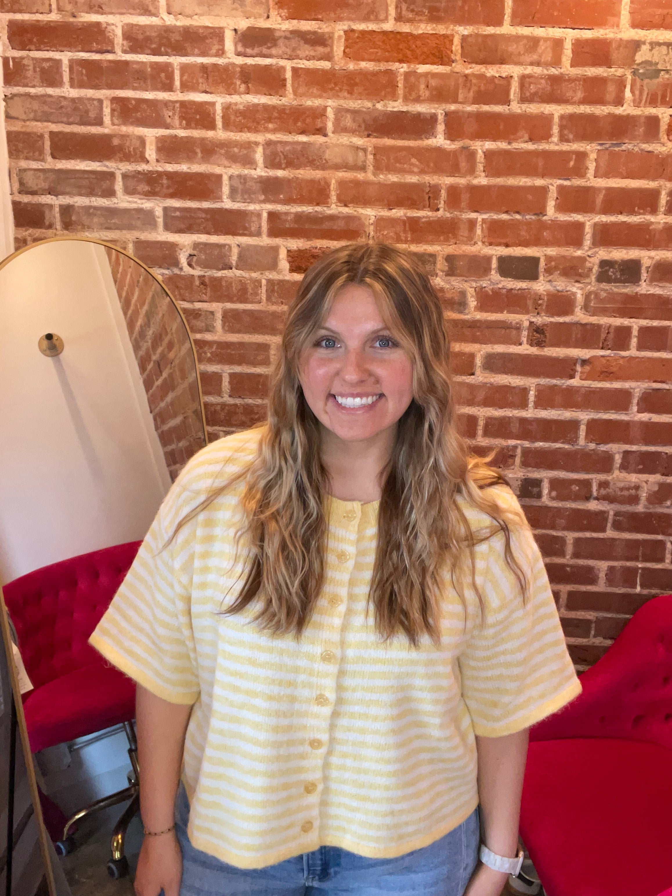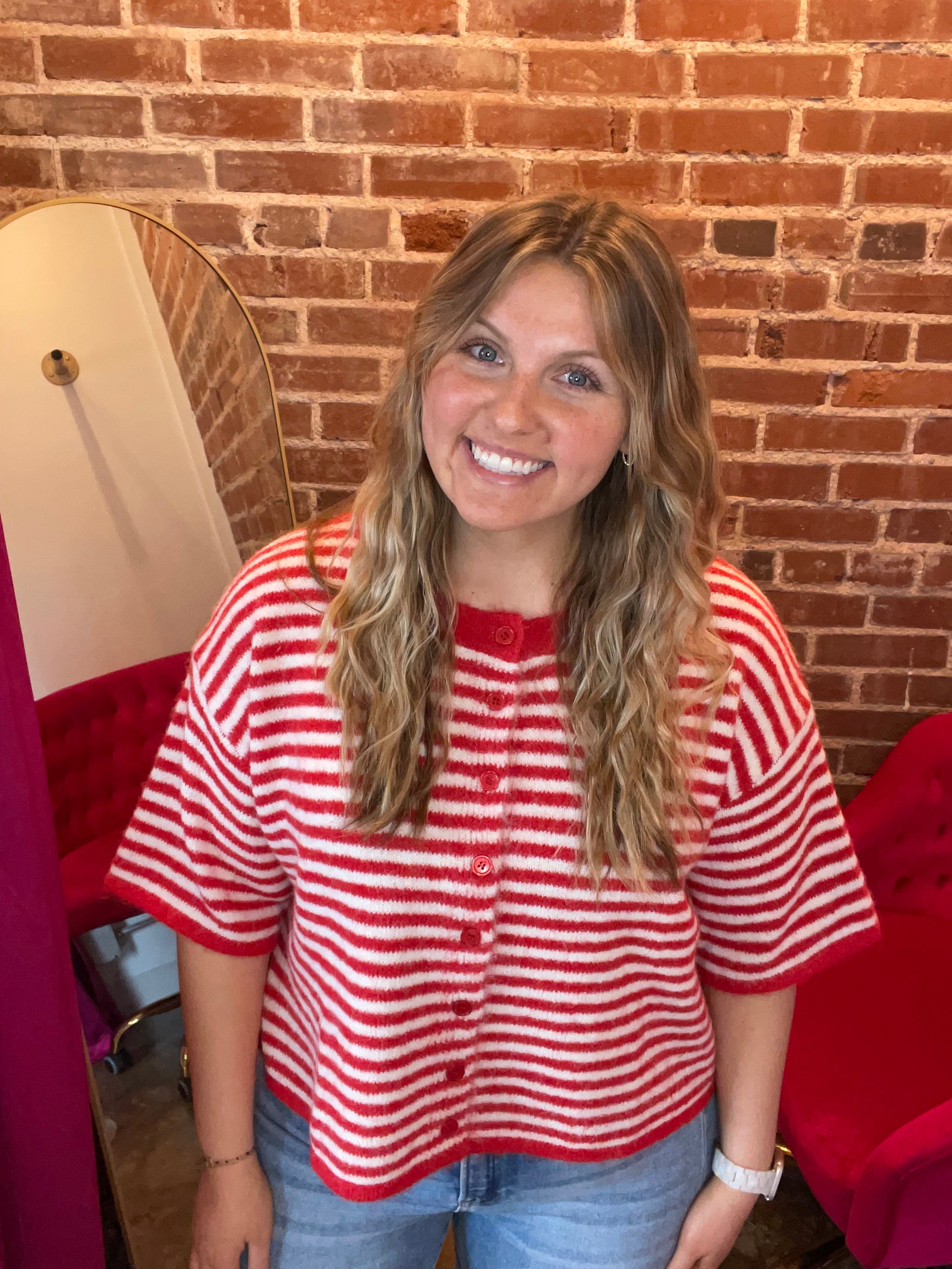 The Striped Luxe Cropped Cardigan features a cropped, oversized design that offers a relaxed fit while enabling ease of movement. This style is ideal for layering, enhancing its versatility across various outfits. Its color can complement a range of wardrobe choices, making it a practical addition to any collection.