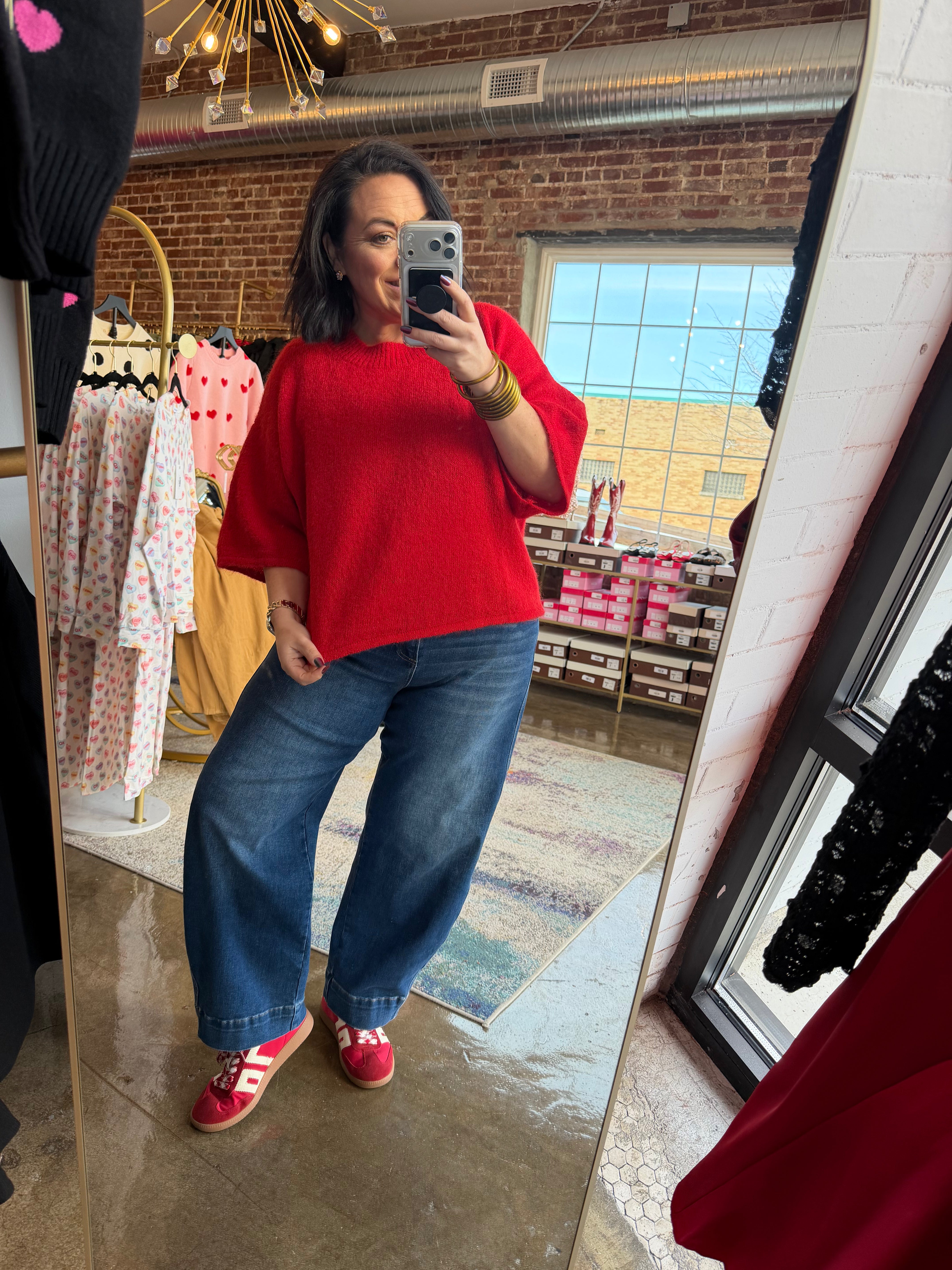 The Luxe Cropped Sweater features an oversized fit and is crafted from soft knit material, providing optimal comfort. The design allows for versatile styling, making it suitable for various occasions. The fabric composition can enhance breathability, contributing to a pleasant wearing experience.