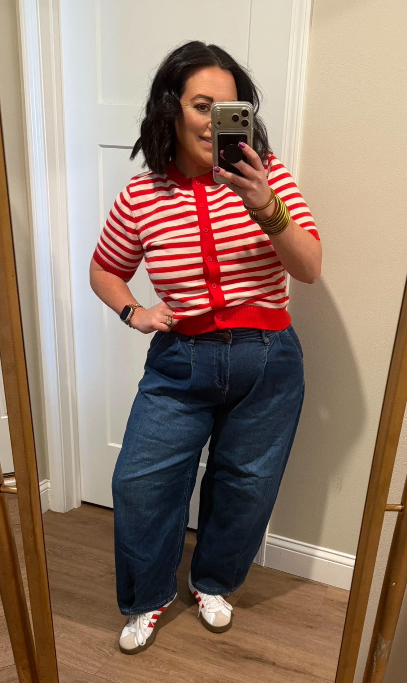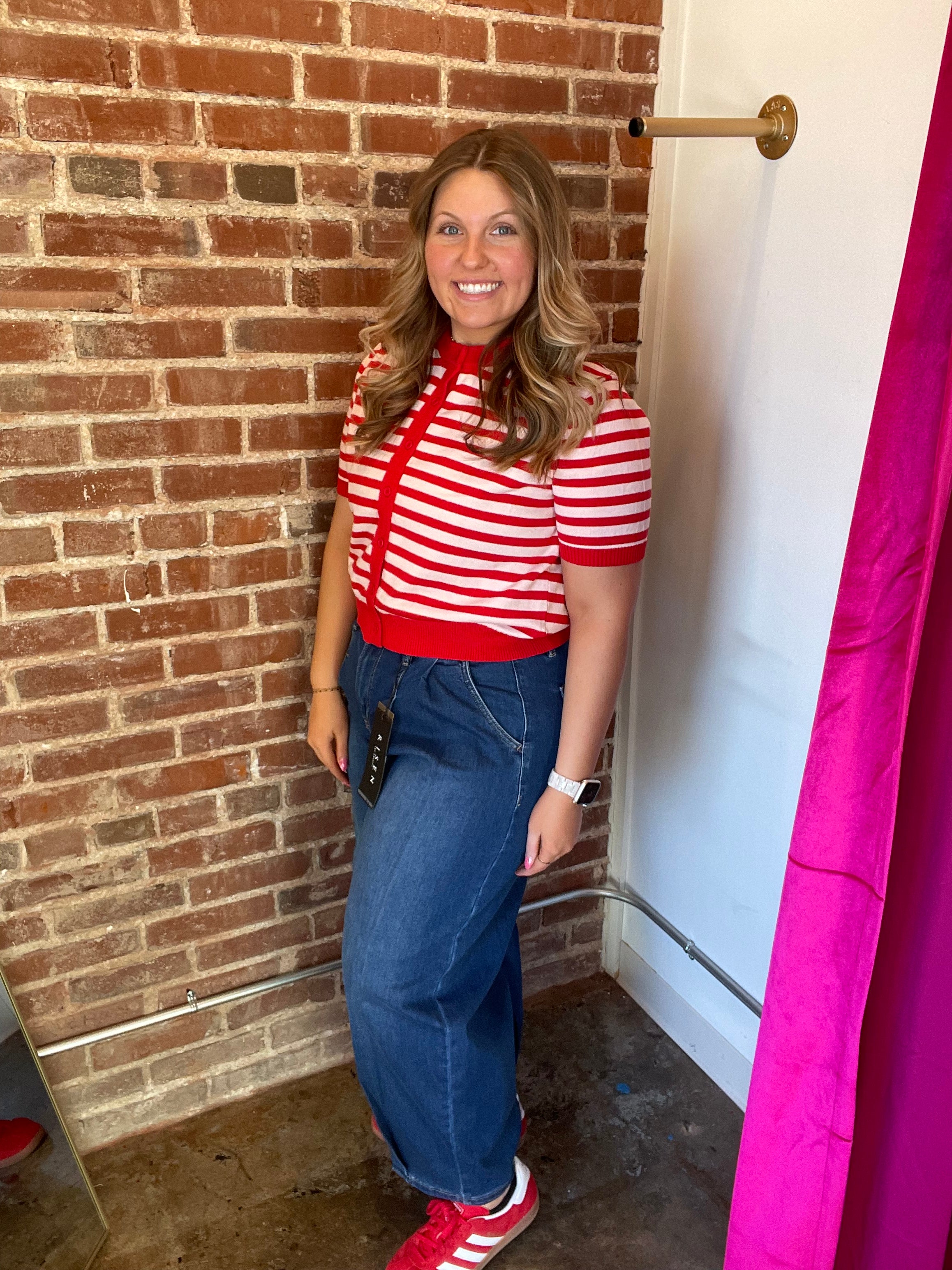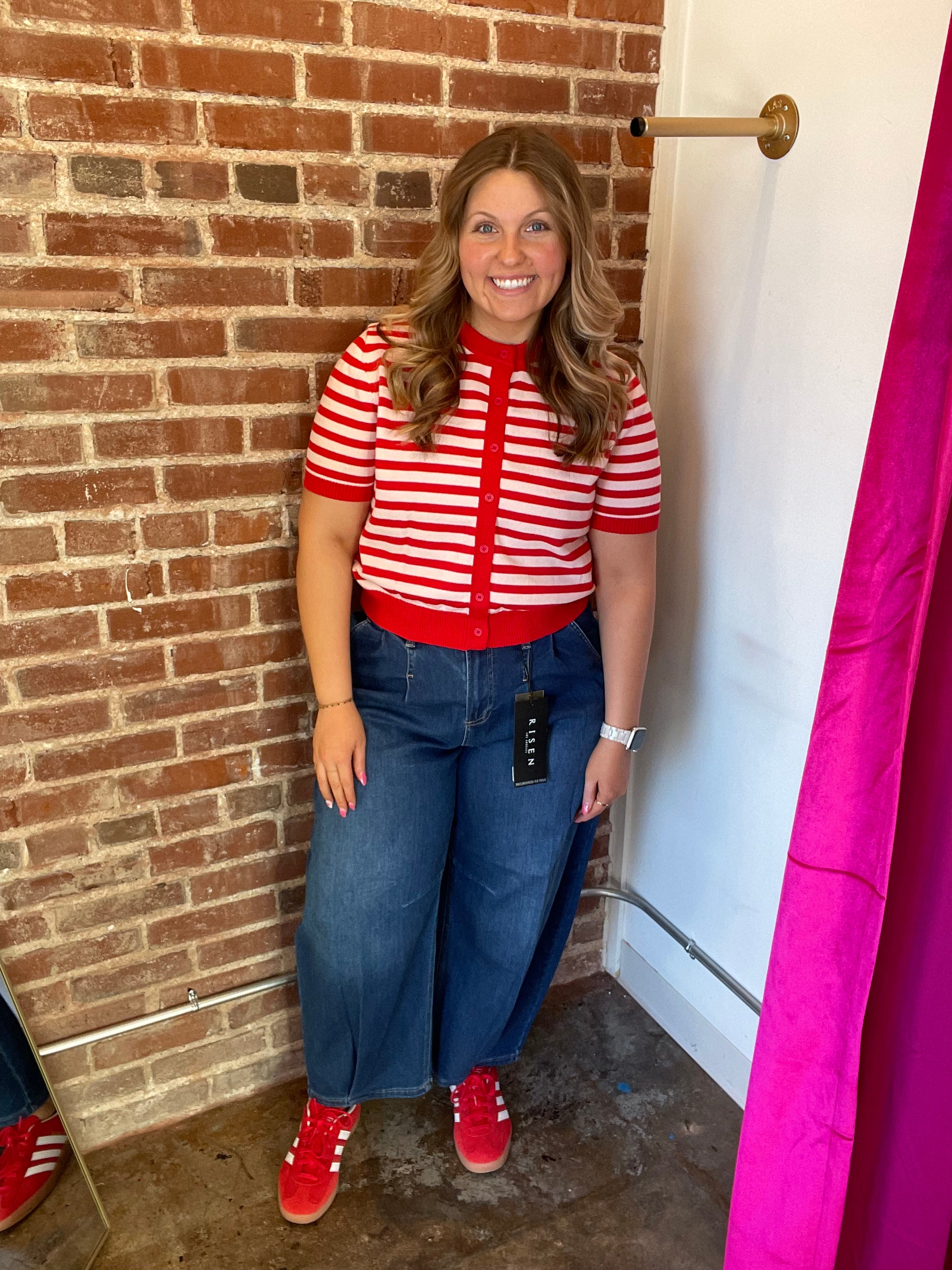 The Stripe Button Down Sweater Cardigan offers a classic design with functional button closures, providing versatility for various occasions. Crafted from high-quality materials, it ensures warmth and comfort, making it suitable for cooler climates. This cardigan is an essential addition to any wardrobe, enhancing both style and practicality.
